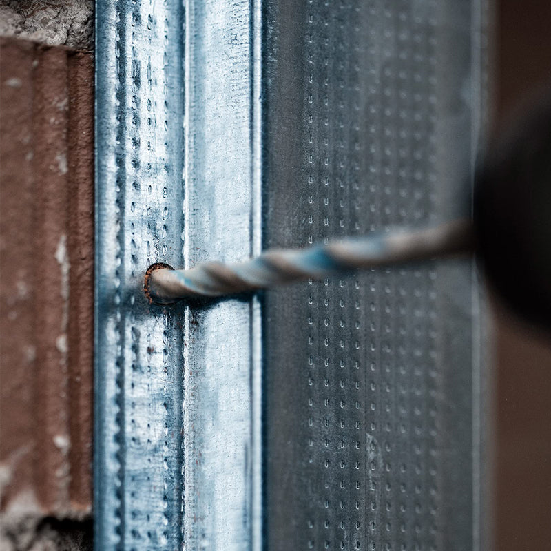 ▲Ideal for drilling holes into multiple materials Can be used in impact mode on concrete and stone, and on rotary setting for brick, tile, sheet metal, wood and plastic