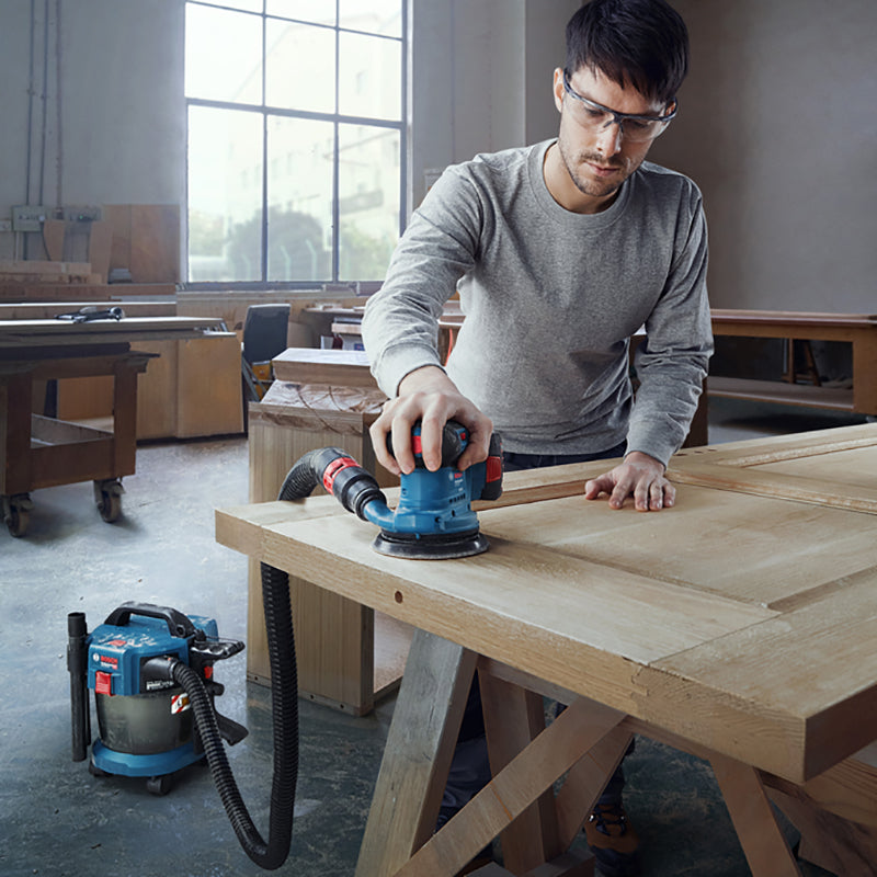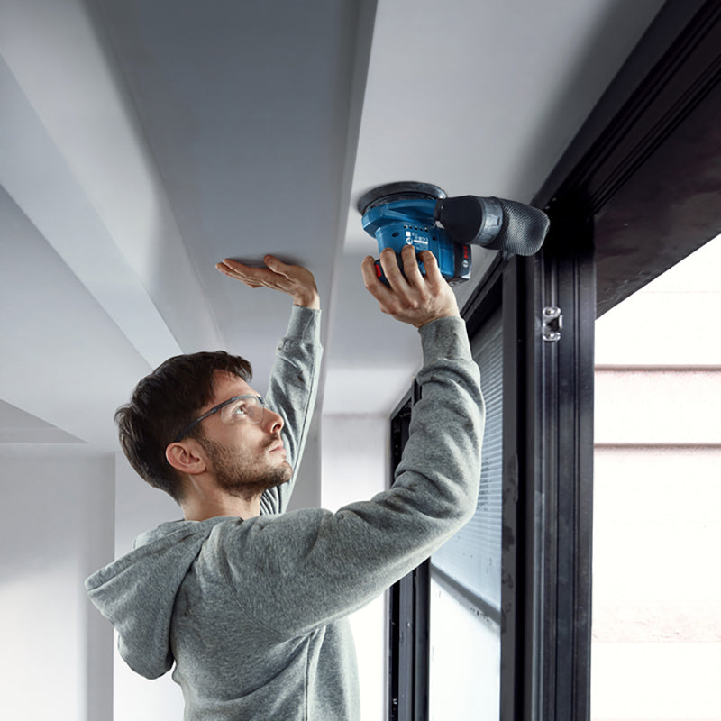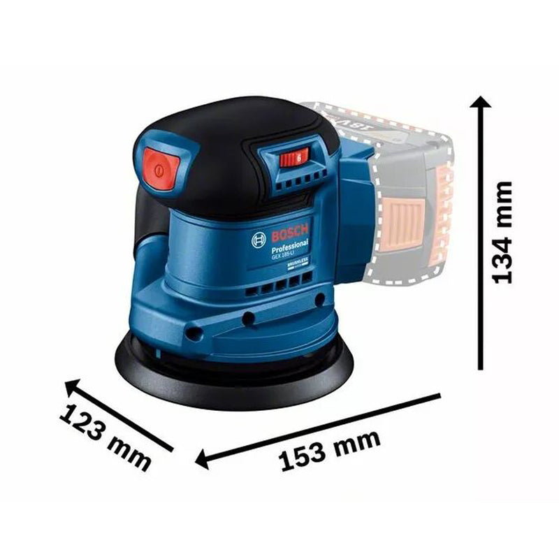 The Bosch Professional GEX 185-LI is perfectly designed to ensure well-balanced, stable sanding and reduced arm fatigue. The highly efficient brushless motor has a run time of up to 40 minutes and a consistent removal rate almost equivalent to that of a corded sander. It is compatible with all Bosch 18V batteries. Compact and lightweight, the ergonomic design and low vibration make this versatile sander easy and comfortable to use with one hand.
