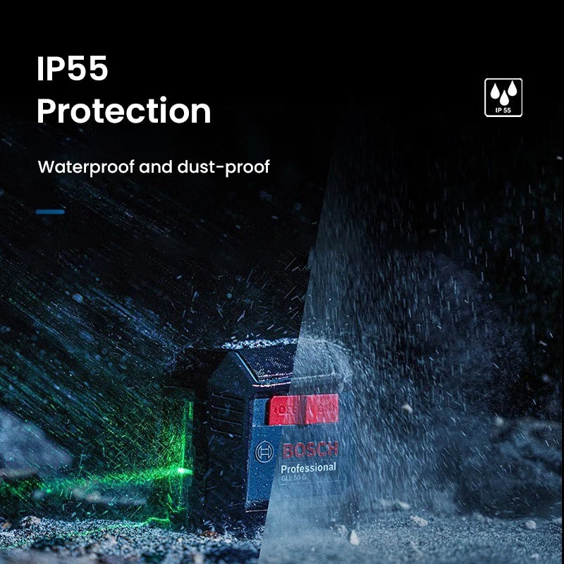 Thanks to the impact absorbing body and robust housing architecture, the GLL 50 G Professional enables IP 55 rated protection and better grip on ground.