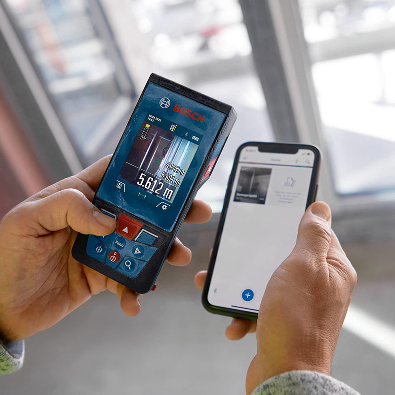 ▲For convenient documentation, measurement results can be transferred via Bluetooth to the Bosch MeasureOn App.