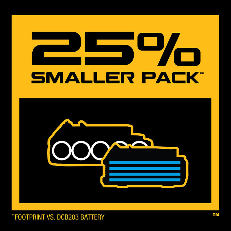 The DEWALT POWERSTACK™ 20V MAX* Compact Battery is 50% more powerful, 25% more compact, and 15% lighter**. This battery features an impact-resistant, rubber overmold base and utilizes revolutionary pouch cell battery technology to provide twice the lifetime**. Engineered to get into tight spaces without sacrificing performance, our most powerful, most compact, and lightest weight battery** is compatible with the 20V MAX* tools and chargers you already own. This kit includes (2) DCBP034 DEWALT POWERSTACK™ 20V MAX* Compact Batteries.