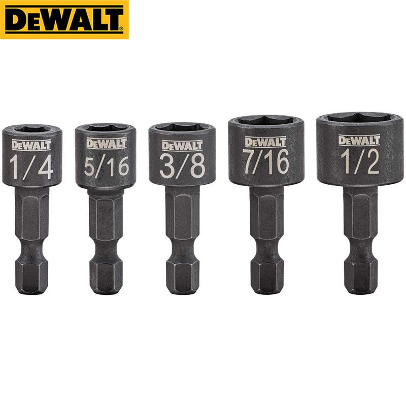 The DEWALT IMPACT READY 5-piece magnetic nut setter impact driver bit set multiplies your handyman abilities. It contains five nut setters of varying sizes for construction and DIY work. They screw wood, metal, and other materials together securely. The relatively small sizes let you access tight spaces in the grooves and nooks of the material. These are compatible with all impact drivers, as well as DEWALT Right Angle Attachments and Locking Bit Holders. They contain strong magnets that keep everything in place to make screwing and tightening easier. Everything is made of shock-resistant tool steel for maximum durability.