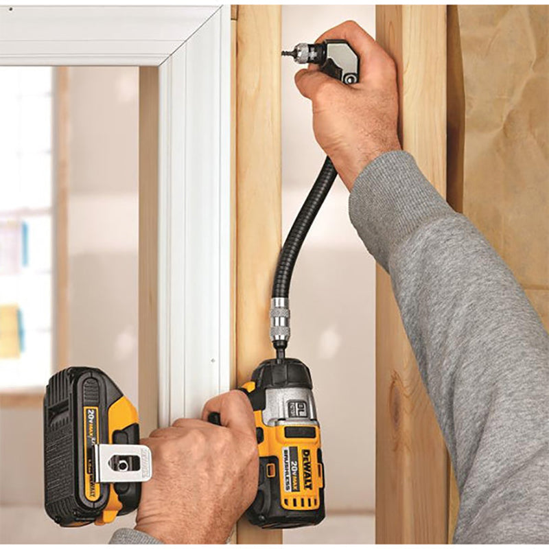 With a 12"Right Angle Flex Shaft, DEWALT Bit Holders enable users to reach nearly any hard-to-reach space. A Rapid Load™ head enables fast, easy bit changes, and each fastener is supported by a magnet for accurate alignment. A side handle offers additional leverage and support.
