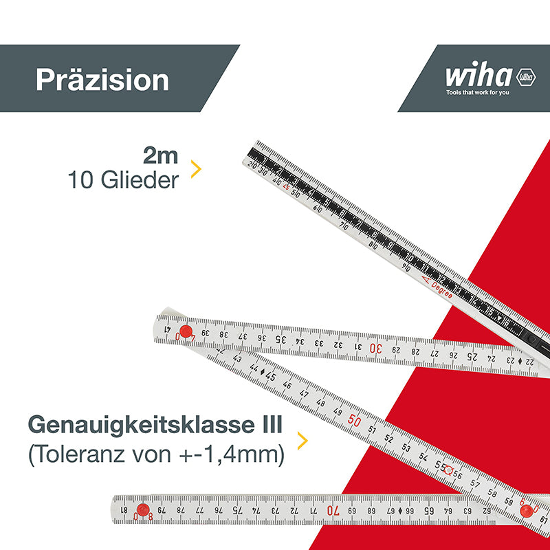 Wiha 33232 Folding Ruler Long Life Plus 2 m Plastic Metric All in One