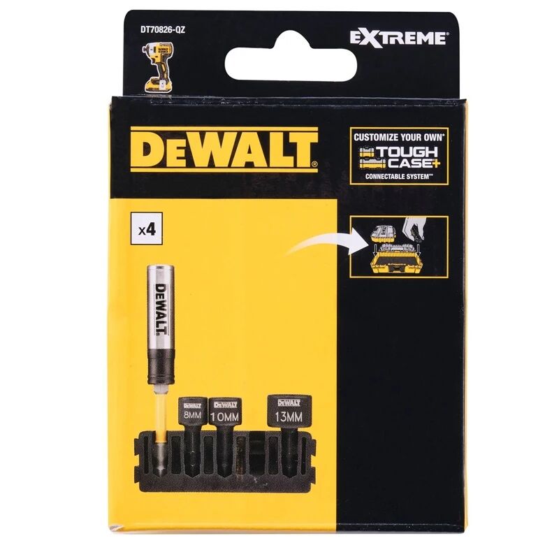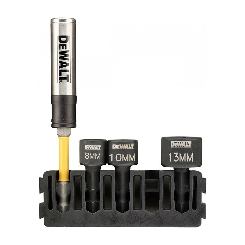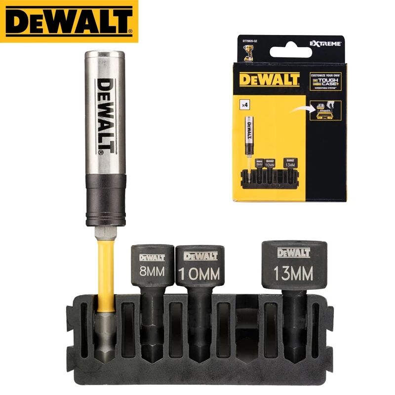 DEWALT DT70826 Stubby Nut Driver Torsion Bit Holder Extension Rod 6.35mm 1/4“ Sleeve 8MM 10MM 13MM Power Tool Accessories 4PC